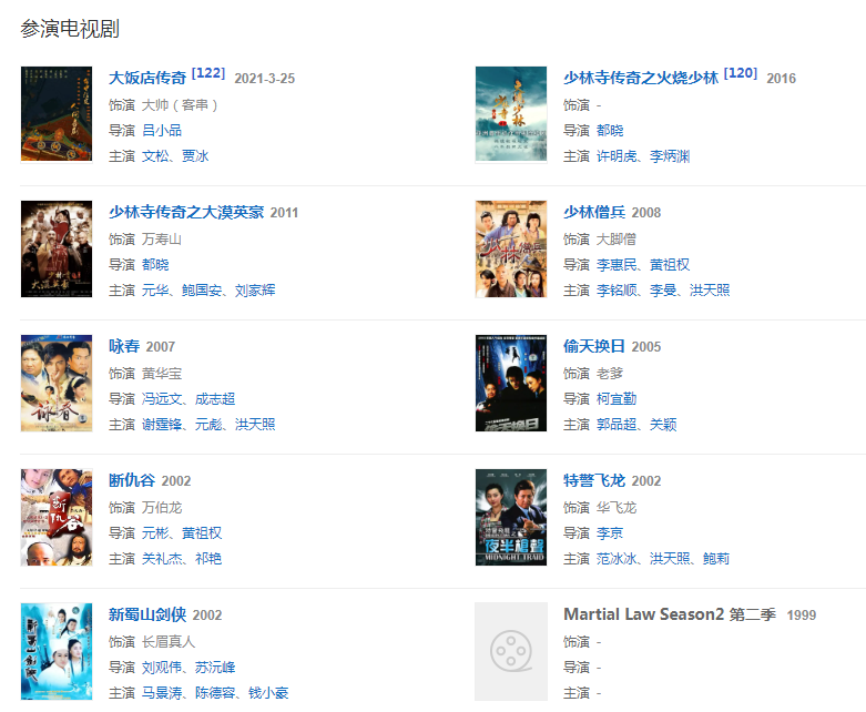 1977年首次自導(dǎo)自編自演動(dòng)作片《三德和尚與舂米六》并擔(dān)任動(dòng)作指導(dǎo)。