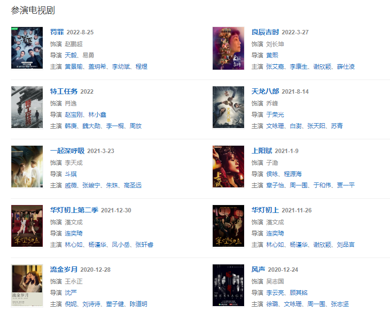 2020年,與陳道明、劉詩詩、倪妮等主演電視劇《流金歲月》。