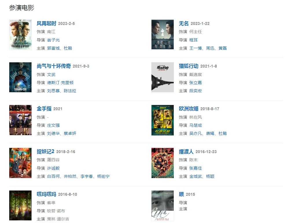 2011年主演王家衛(wèi)執(zhí)導的影片《一代宗師》 。