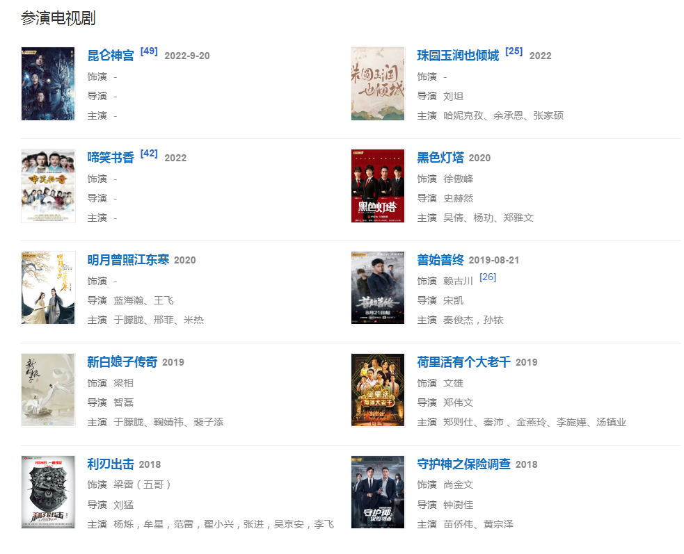 2013年,在嚴(yán)屹寬、張翰主演的古裝電視劇《隋唐演義》中飾隋文帝楊堅(jiān)。