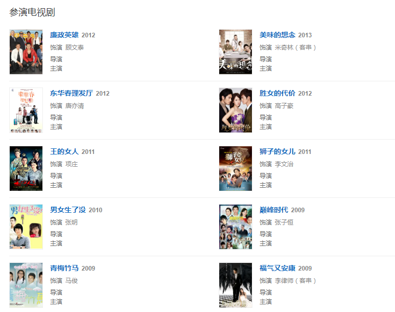 代表作品:紫禁之巔、微笑PASTA、勝女的代價(jià)、王的女人、東華春理發(fā)廳、廉政英雄、王子變青蛙