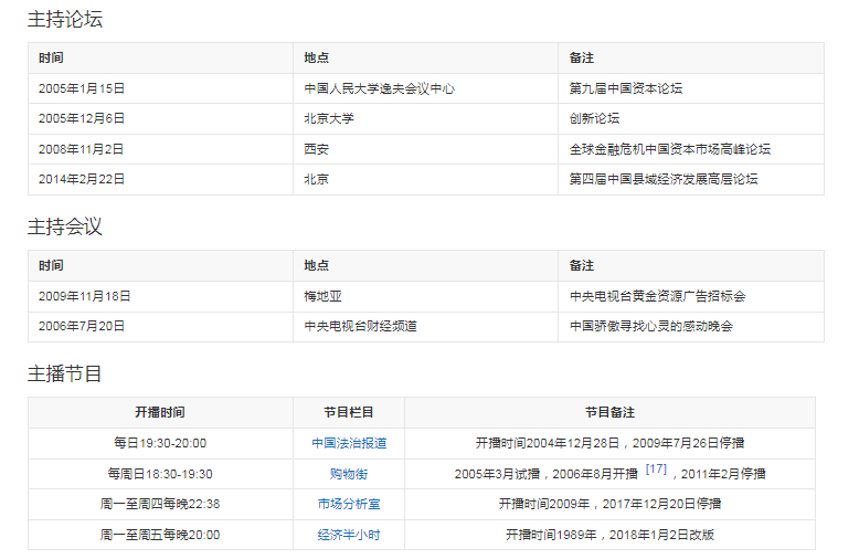 2001年10月8日,擔(dān)任財(cái)經(jīng)股票分析類(lèi)節(jié)目《中國(guó)證券》主持人。